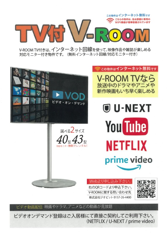 テレビ📺の視聴ができるだけではなく入居者様でご契約をしていただければNetflix🎥やU-NEXT等も視聴可能です☺️💕